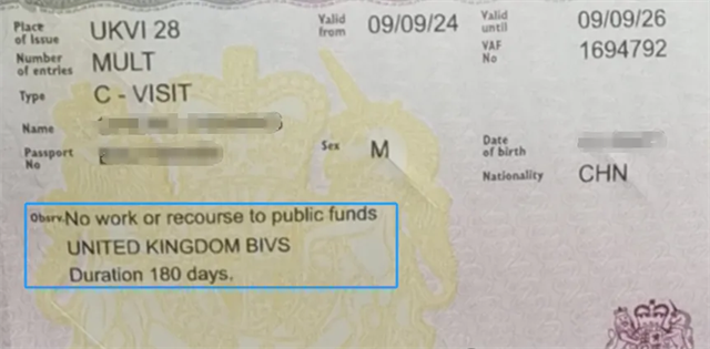 目前英國(guó)訪客簽證,默認(rèn)簽發(fā)2年有效期的多次入境簽證,每次停留最多不能超過(guò)6個(gè)月,則此簽證上正常都會(huì)帶有UNITED KINGDOM BIVS即“英國(guó)-愛(ài)爾蘭簽證體系”,表明持有此簽證也可以入境愛(ài)爾蘭。