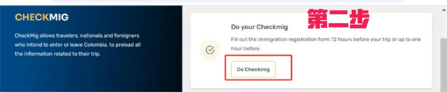 圖一,打開網址:https://www.migracioncolombia.gov.co/,選擇“Check-Mig”。 (網站比較不穩定,可以嘗試翻墻,多換幾個瀏覽器,比如 google 瀏覽器、360 極速瀏覽器)