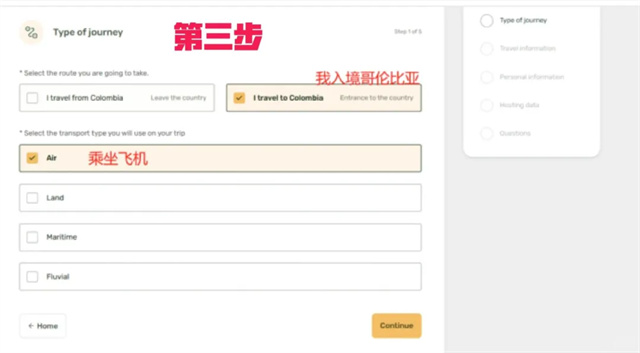 哥倫比亞入境卡填寫流程