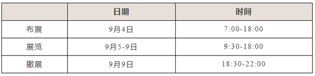 開(kāi)放時(shí)間: 2025年8月30日至9月9日,09:00-18:00